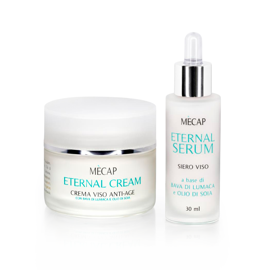 La nostra linea Eternal è un trattamento innovativo ed intensivo, ideale per idratare, nutrire e rigenerare la pelle del viso. La sua formula naturale combina le straordinarie proprietà della bava di lumaca, conosciuta per il suo effetto rigenerante e anti-age, con l’olio di soia, ricco di acidi grassi essenziali e vitamina E, per un’intensa azione nutriente, elasticizzante e favorendo il trattamento di cicatrici, macchie cutanee e piccole rughe. La crema nutre in profondità la pelle, il siero dona elasticità, luminosità e un aspetto visibilmente più giovane.
