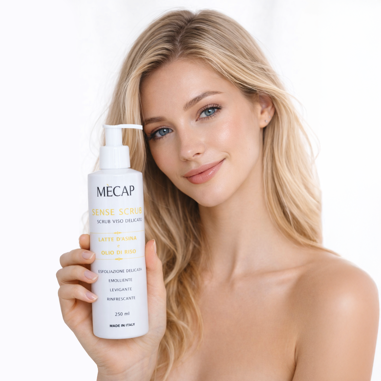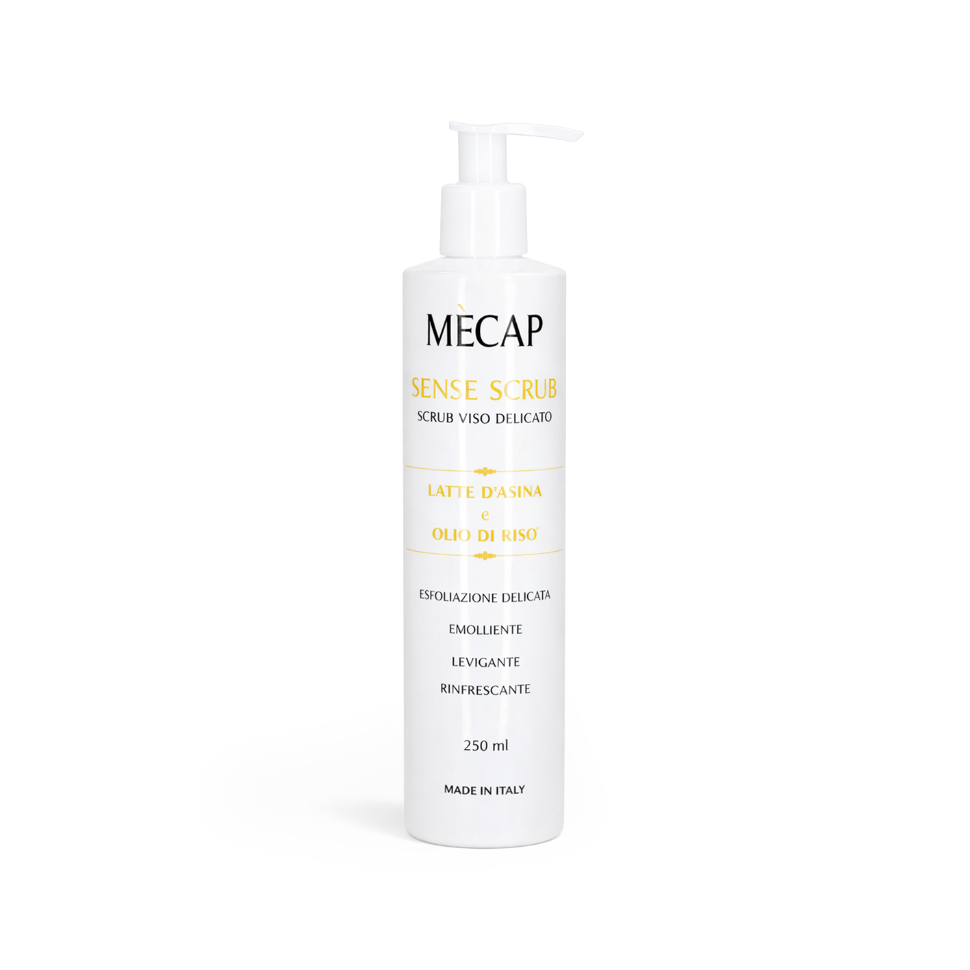 Il nostro Sense scrub, è uno scrub viso cremoso con granuli dalle texture ricca e morbida, pensato per coccolare la tua pelle con un’esperienza sensoriale unica. La base cremosa del prodotto è arricchita con latte di asina, ricco di vitamine e minerali, che aiuta a calmare la pelle, mentre l’olio di riso, ricco di antiossidanti, combatte i segni del tempo, donando un aspetto sano e luminoso. La formula, delicata, contiene microparticelle esfolianti che rimuovono le cellule morte senza aggredire la cute, rendendo la pelle visibilmente più luminosa, morbida e levigata.